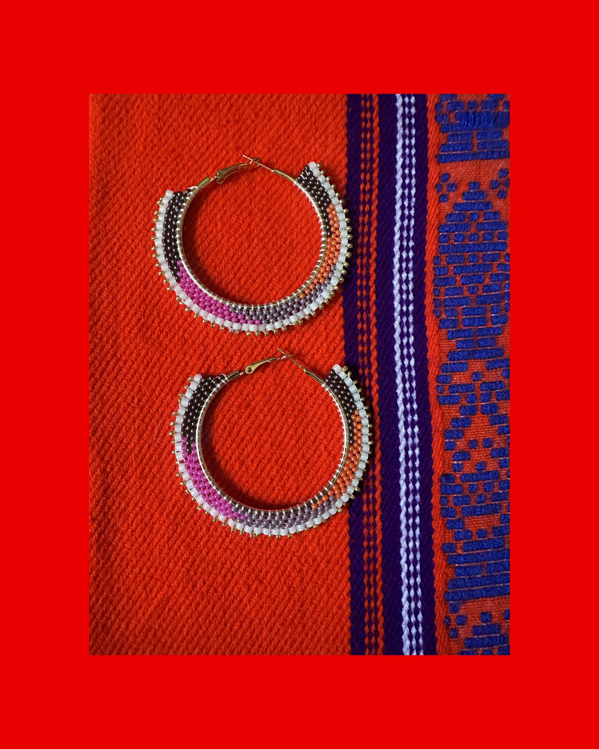 Abstract XL Beaded Hoops - Pink