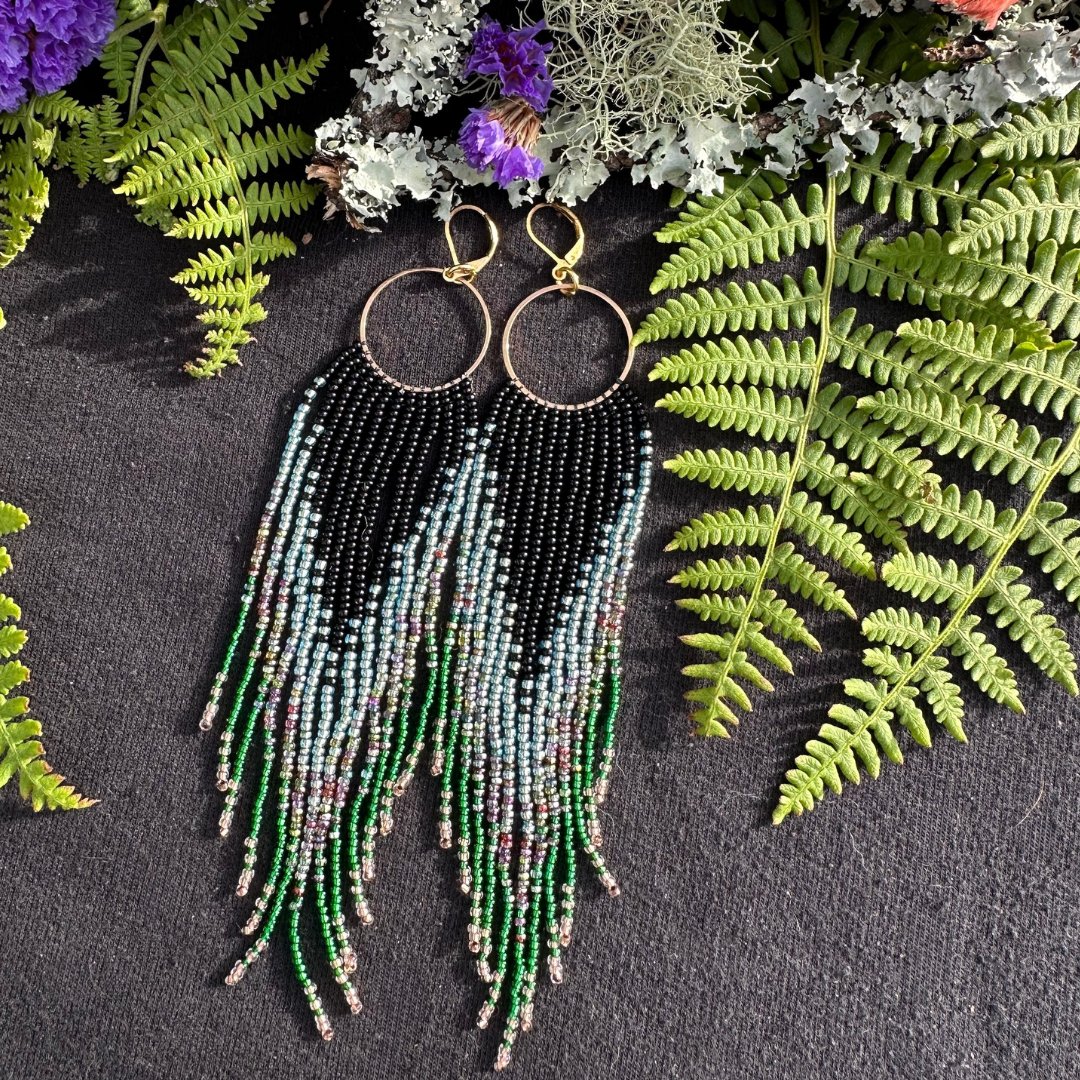 Made with 11/0 czech seed beads. Lightweight and durable. Hand made in Grayland, WA.